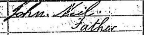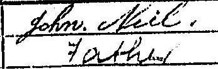 - At the civil 1889 registration of the marriage of his daughter Sarah he was John Neil (Sarah signed her name)