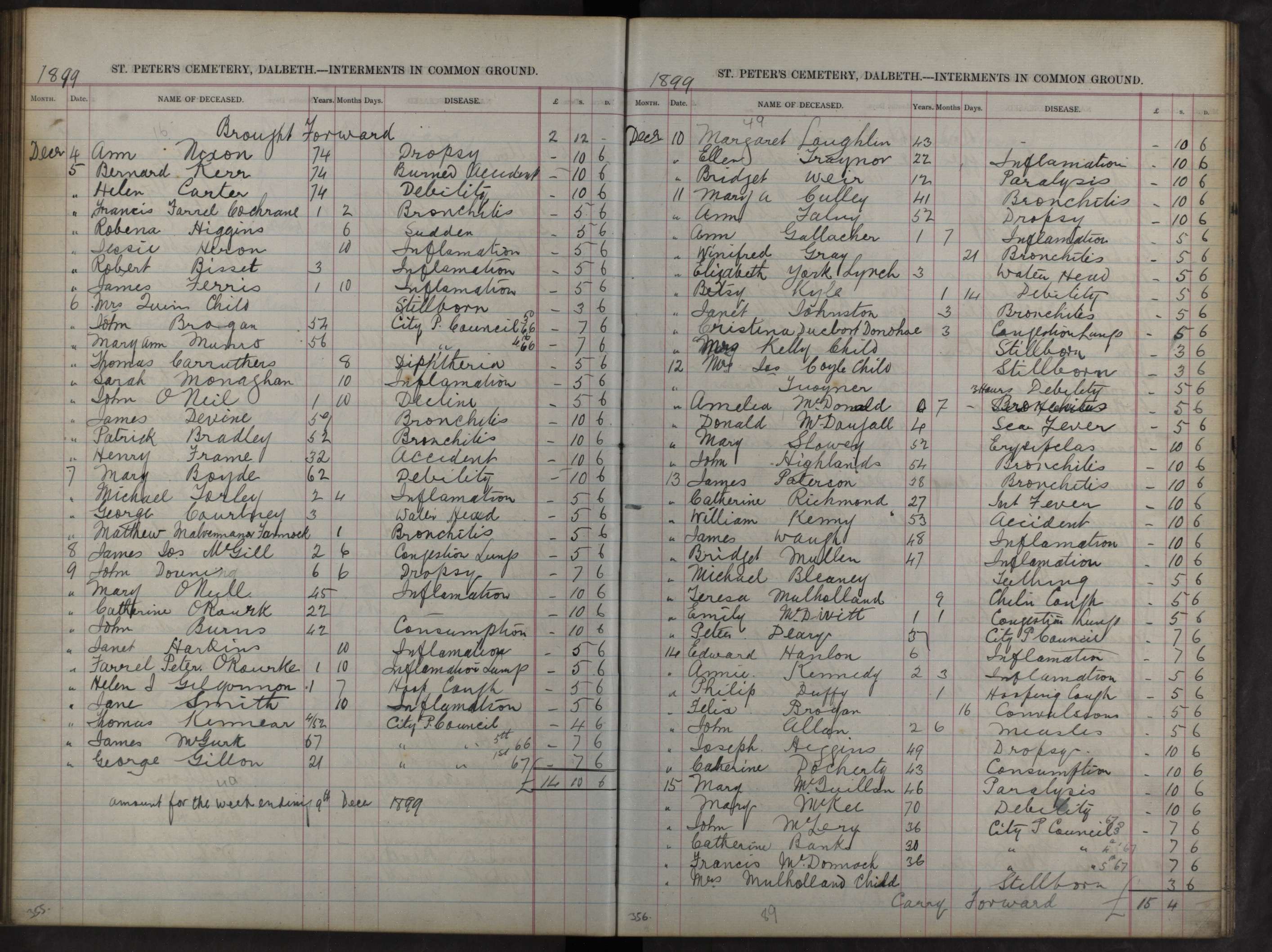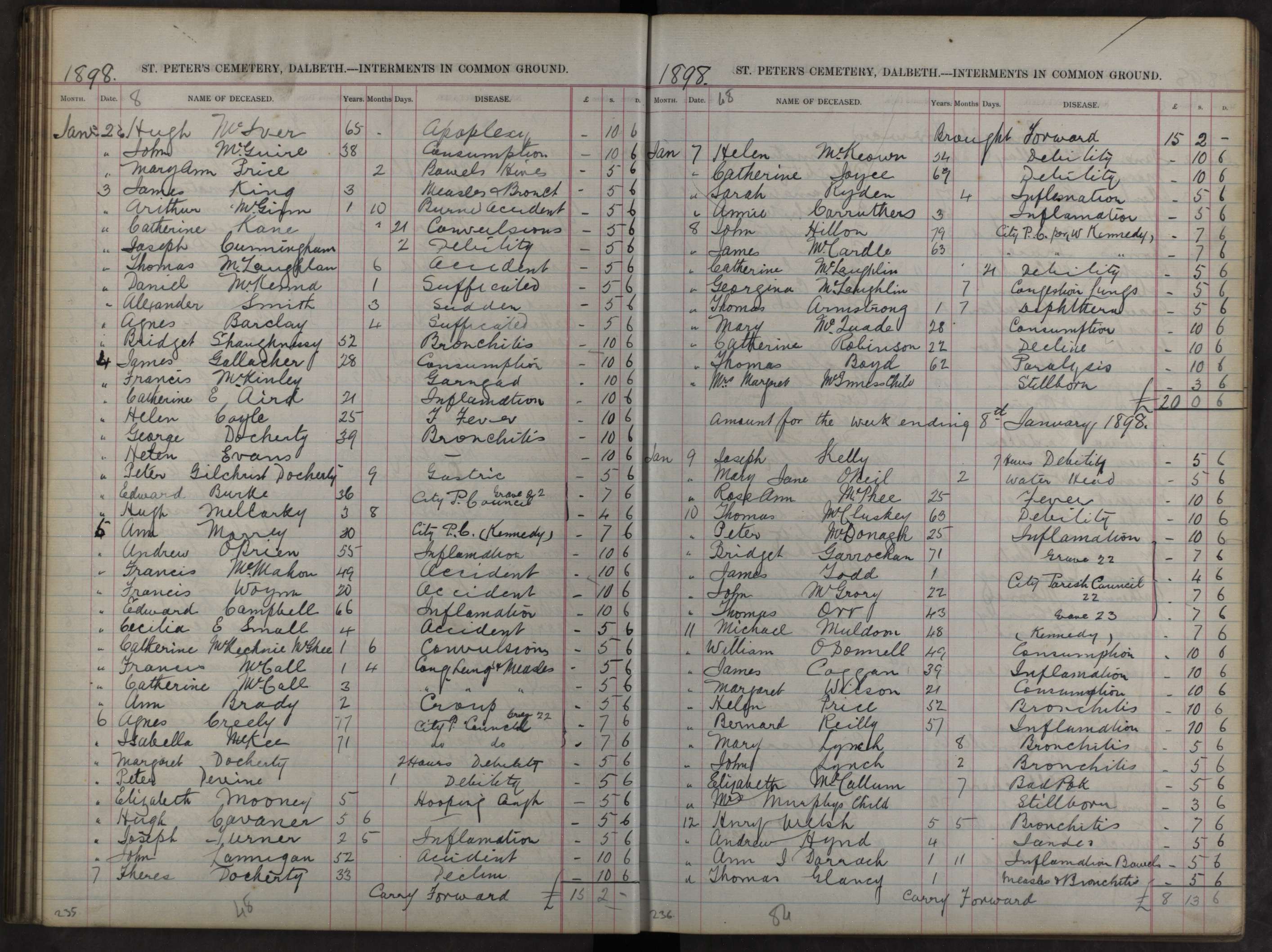 St Peter’s Cemetery, Dalbeth – Interments in Common Ground (Burial Date) 7 Jan 1898, Annie Carruthers (aged) 3 (cause of death) Inflammation £0 5s 6d