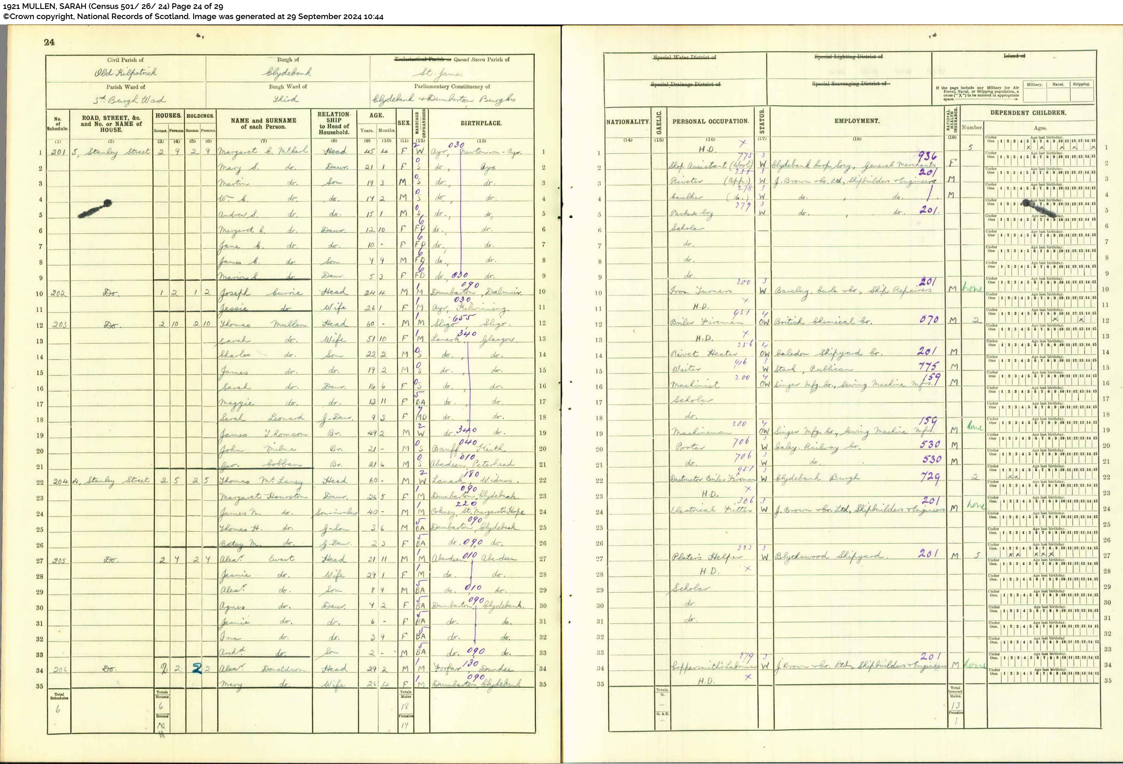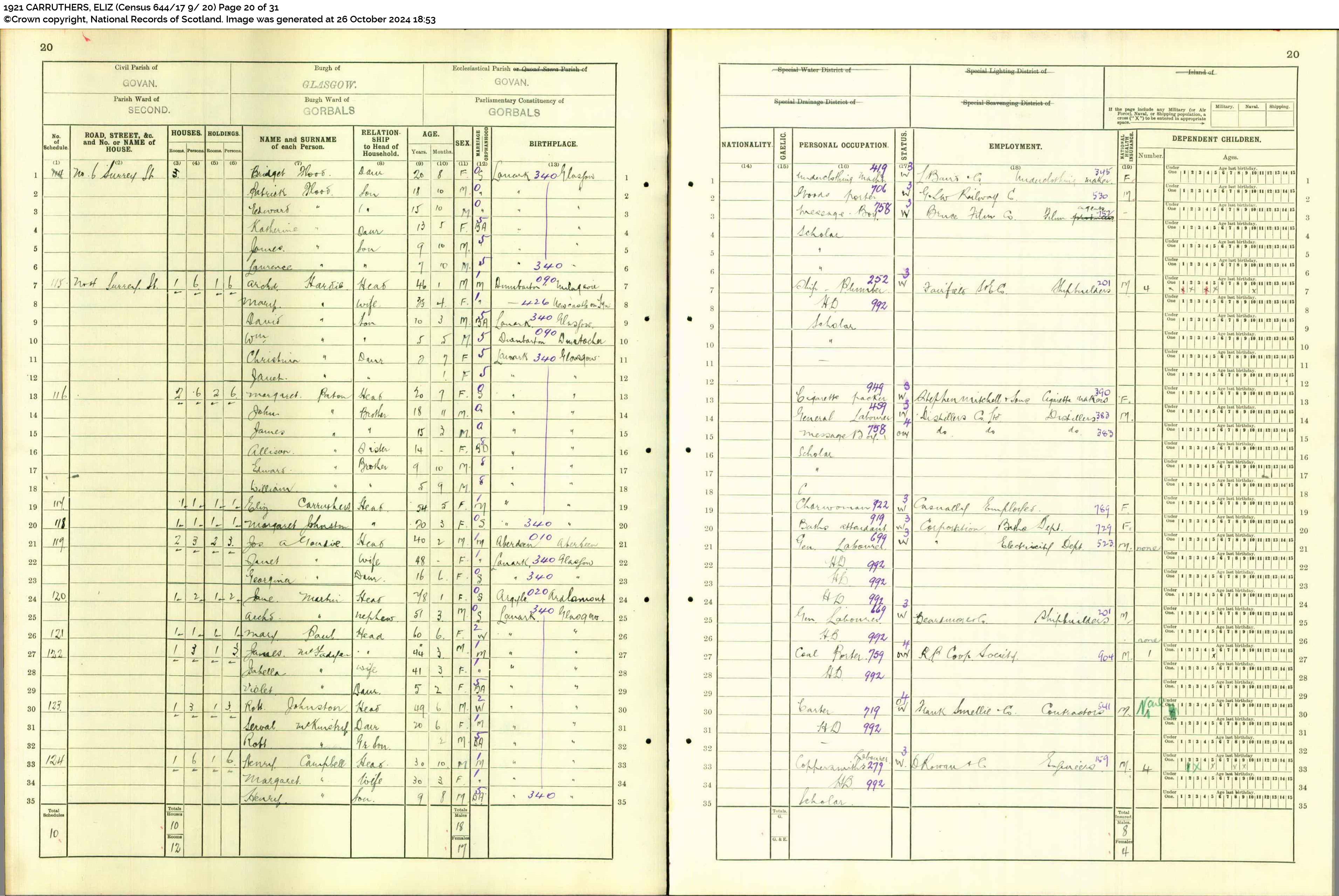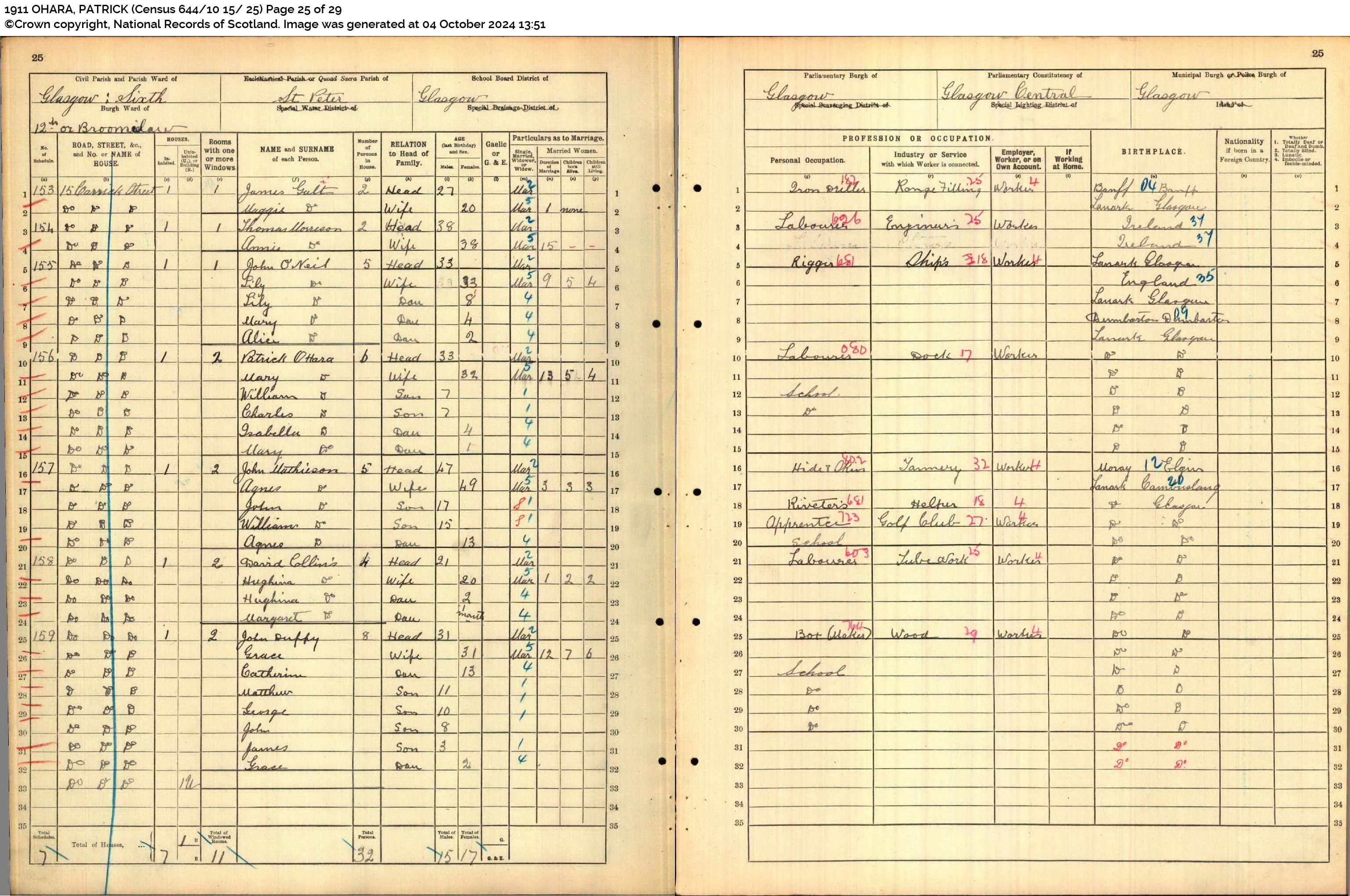 1911 Census Return for 15 Carrick Street, Blytheswood, Glasgow – Scotland’s People (1911 England, Wales & Scotland Census 644/10 15/ 25 Page 25 of 29)