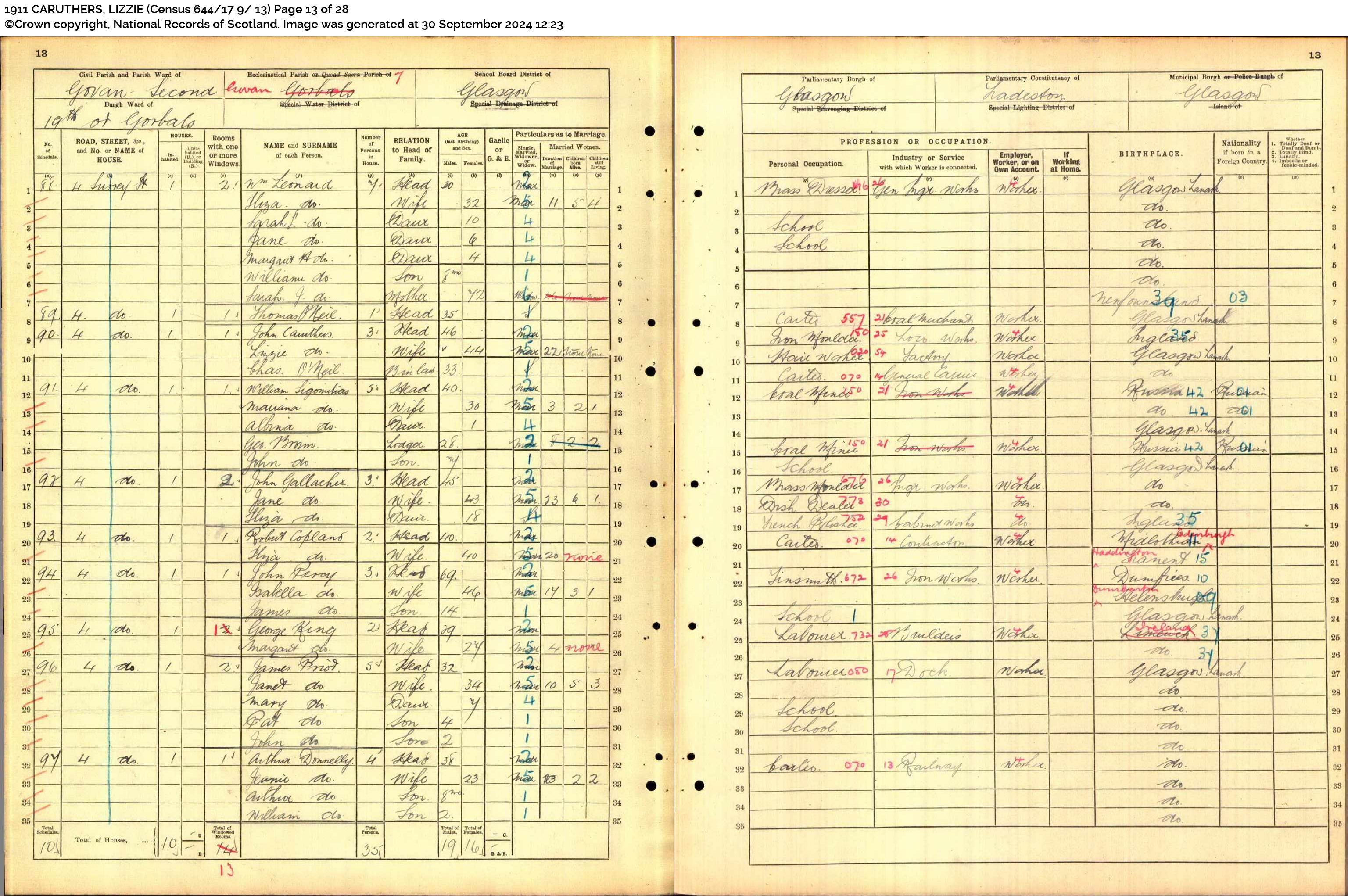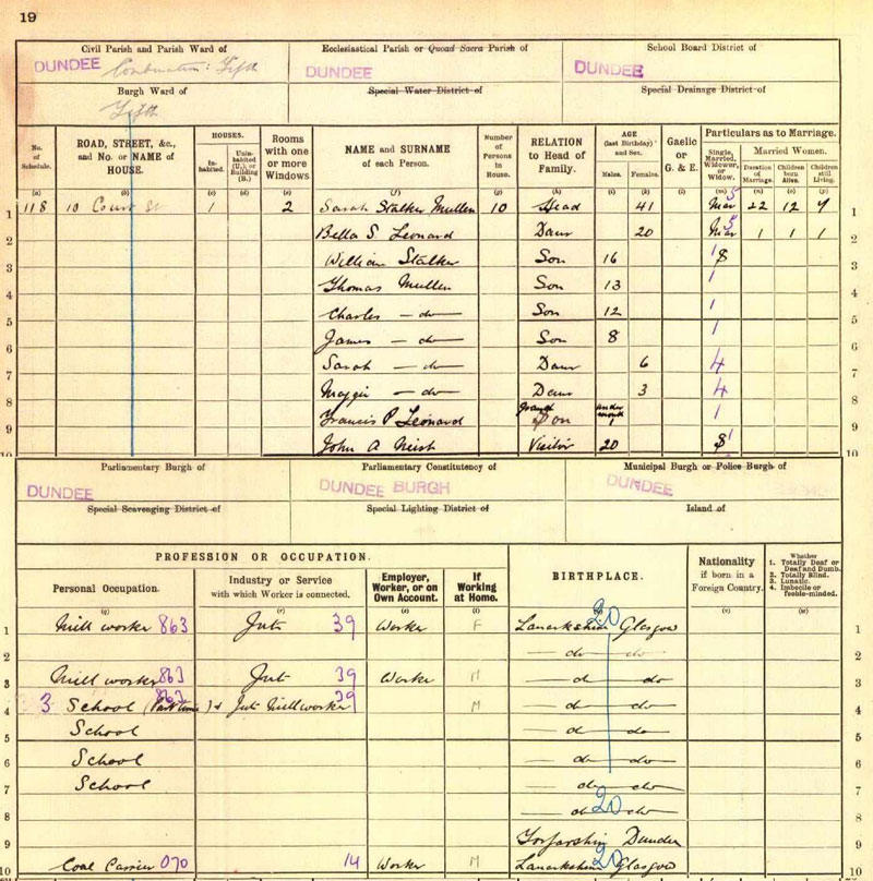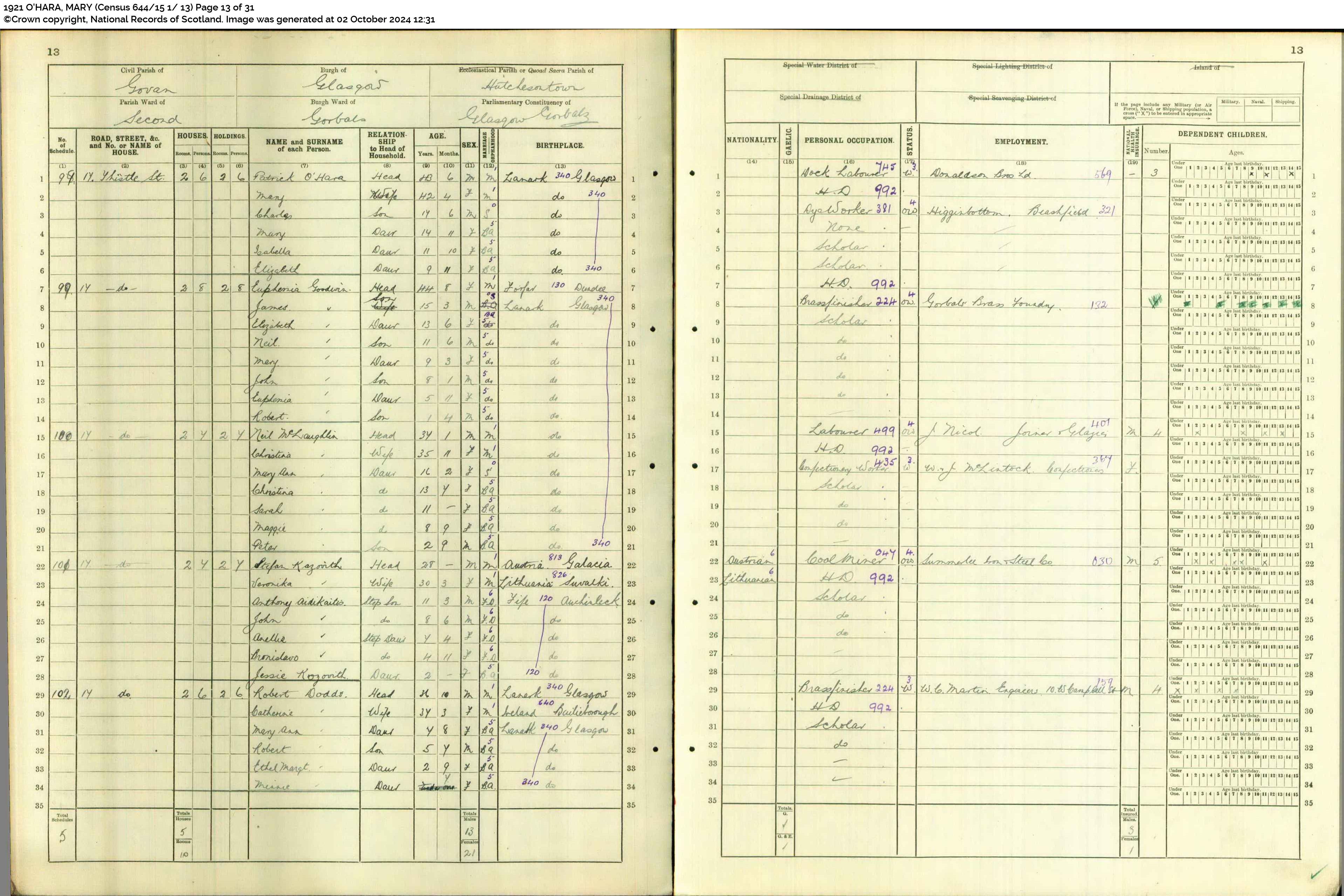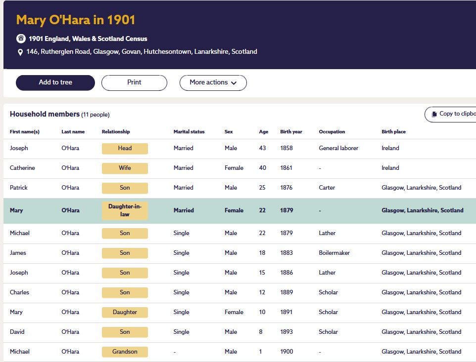 Mary O'Hara Wife F 32 M 13 5 4 Glasgow, Lanarkshire