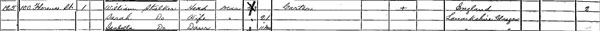 Since they had been married for six years by the time of this census, I expected them to have children but it is not so. If Lizzie’s parents were unfortunate to have lost four of their ten children in infancy, at least they had six that lived. This was not the case with Lizzie and John. I have found four births to this couple and the longest lived was 3 years; the others died after 8 months, 5 weeks and 2 days.