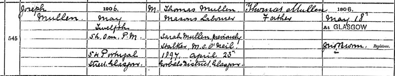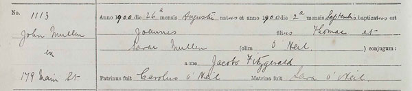 It is worth noting that Mary’s mother is called Lizzie Neil at her birth and death which are statutory records but O’Neil in the Roman Catholic church record of her baptism.