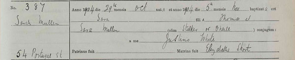 Baptism of Sarah O’Hara 9 May 1913 at St Luke’s, Glasgow, Gorbals, Lanarkshire.