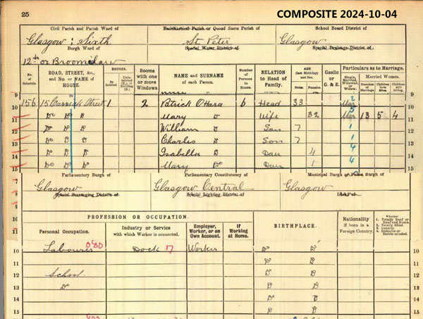Patrick O'Hara 6 Head M 33 M Labourer Dock Worker Glasgow, Lanarkshire