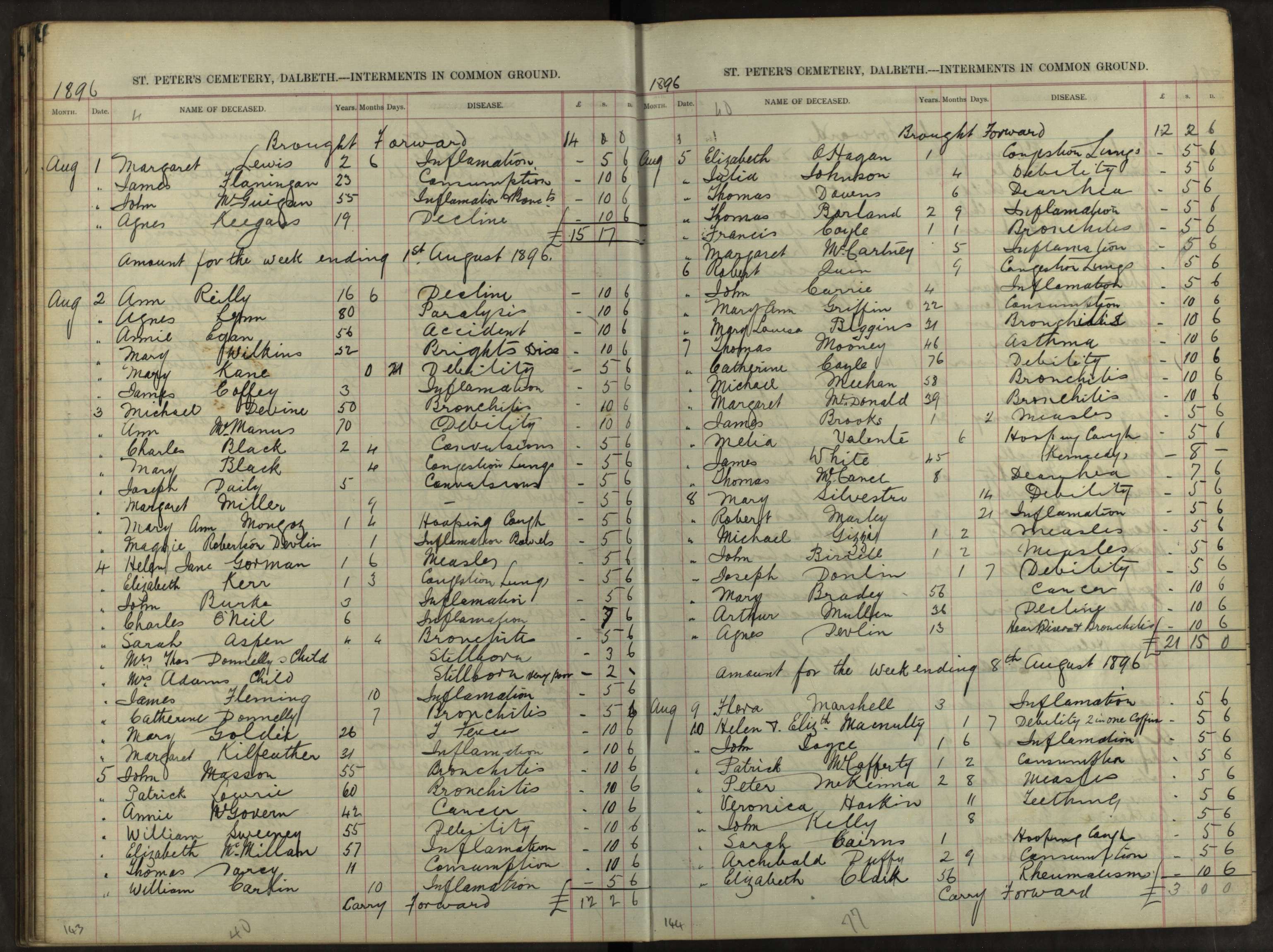 Burial of Agnes Reid Downs, 18 Aug 1901 at St Peter’s Cemetery, Dalbeth