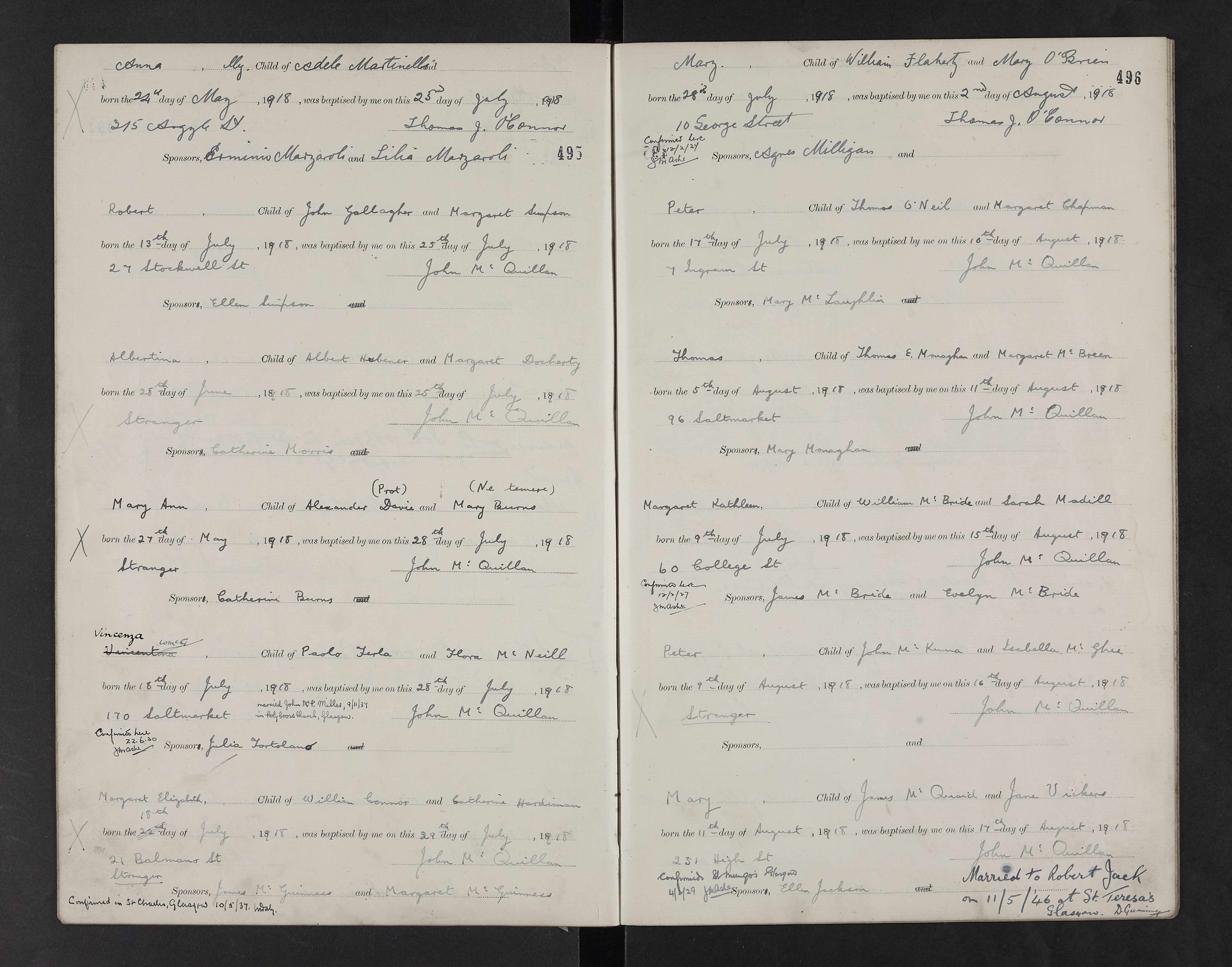 Baptism of Albertina Hubener 25 Jul 1918 at St Andrew’s Metropolitan Cathedral, Glasgow